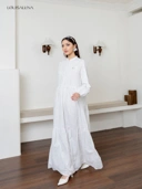 Dress panjang dengan desain anggun dan feminin, terbuat dari bahan Katun Embroidery yang lembut dan adem. Dress ini cocok untuk tampilan modest yang elegan. Ideal dikenakan untuk acara formal, semi-formal, maupun aktivitas spesial sehari-hari. Cocok juga dipakai pada saat hari raya.